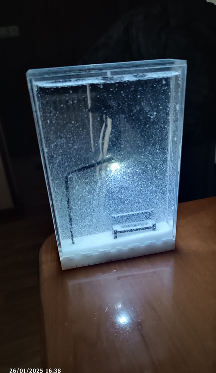 🔹 برفریزی متحرک: برفهای مصنوعی داخل جعبه بهآرامی حرکت میکنند و تداعیکننده یک شب برفی واقعی هستند؛ عنصری آرامشبخش و هیپنوتیزمکننده.